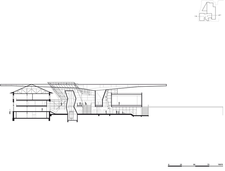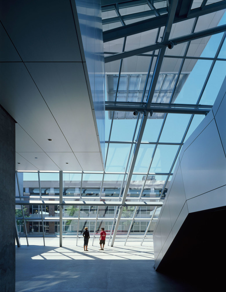The building is broken up into 3 parts: the Crystal, the Gallery Box, and the Roof Cloud. The Crystal serves as the main entry and operates as an orientation and connection space serving both the new and old buildings. It is a grand, flexible space that can also be used for banquets, arts festivals, and events hosted by outside organizations.