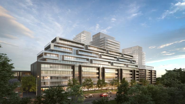 Phase two and three involve the construction of Tower 2 and it’s mid-rise component which fronts onto Sheppard West. This 21 storey tower and it’s associated 11 storey podium will step down to the east and the adjacent lowrise neighbourhood. The building will include 220 market residential units, 209 rental replacement units and the retail component. Phase four will involve the construction of Tower 1 in the northwest quadrant. The tower will be 19 storeys with an 8 storey podium and contain 230 market residential units.