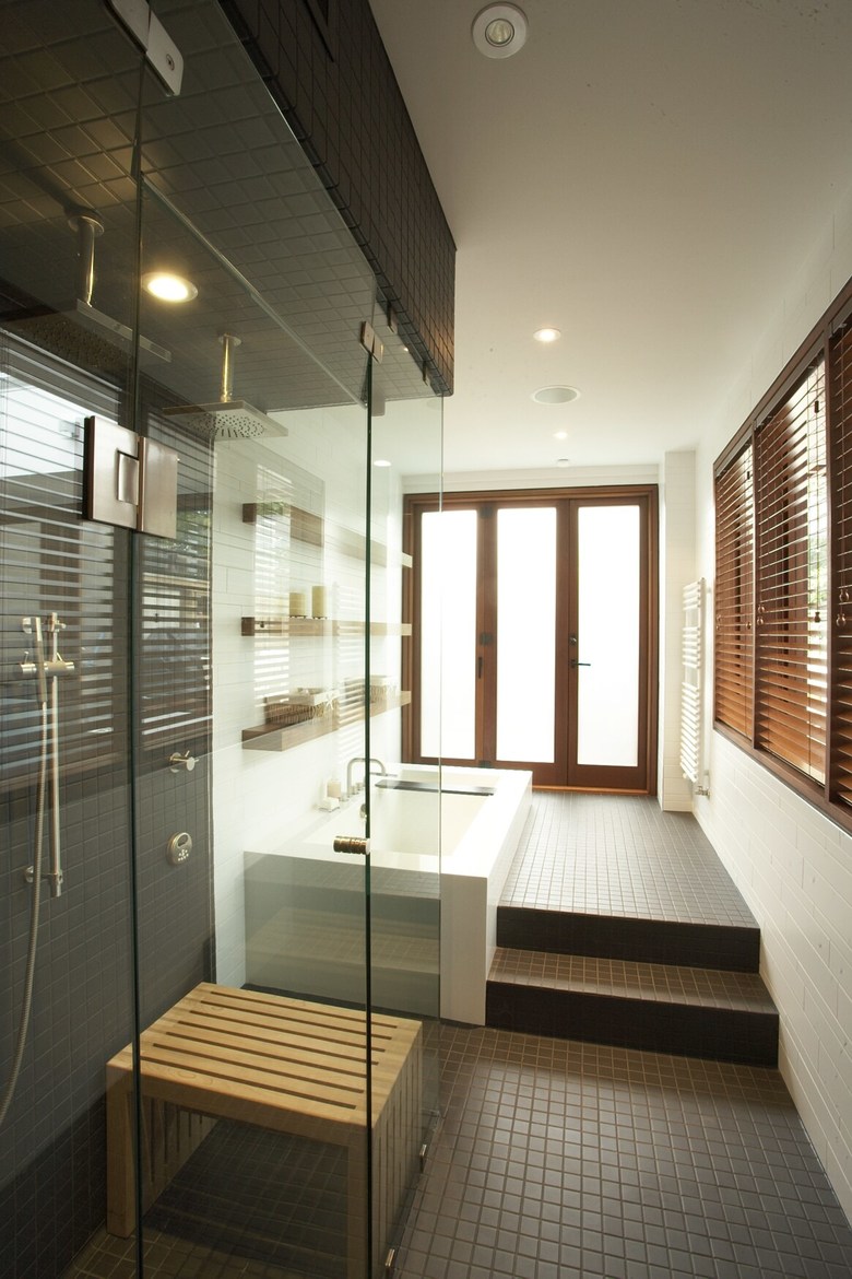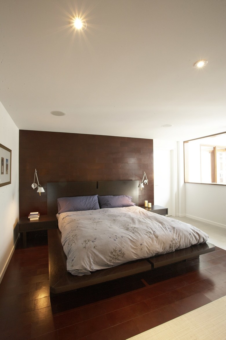 An outdoor courtyard is accessed through bi-fold doors off the living area and also from the private master bath bringing the outside space in as part of the interior. A bridge from the master bedroom also allows access to the outdoor space at the second level.