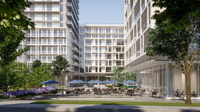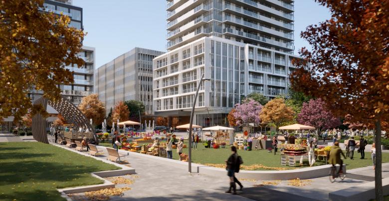 40,000sq. ft. of shared open space is to be provided in the centre of the site. 65% of all ground floor space (75,600sqft) will be retail/commercial creating a vibrant mixed use community within 100m of Leslie subway station.