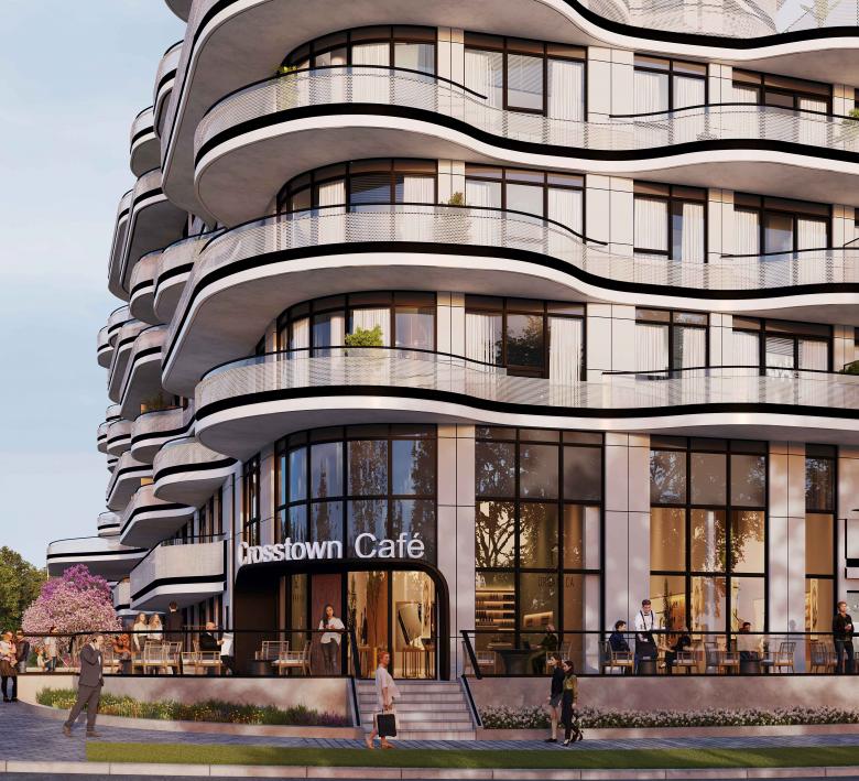 Lily’s design evolved organically in response to the site’s triangular shape and surrounding context. It embraces the site with gentle, organic edges, contrasting the architectural language of “Crest” and the “One Crosstown” building to the south. This contrast adds to the building’s distinct identity and uniqueness.