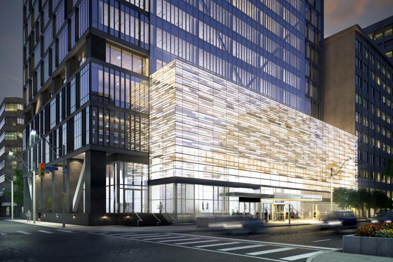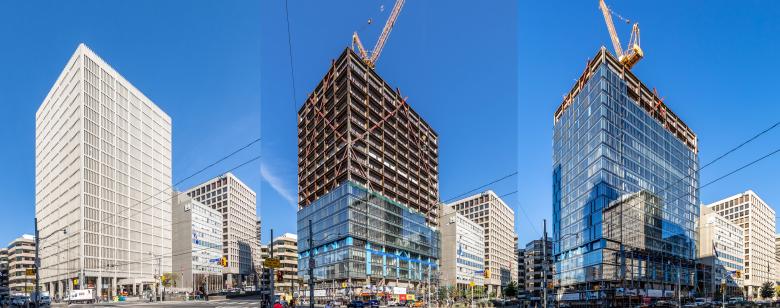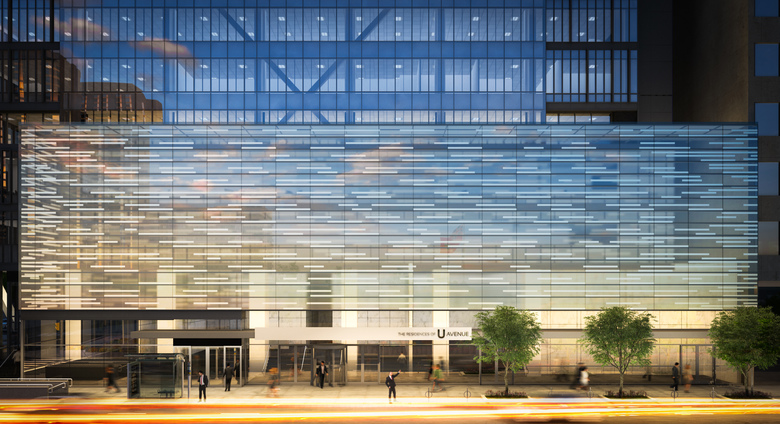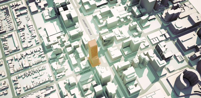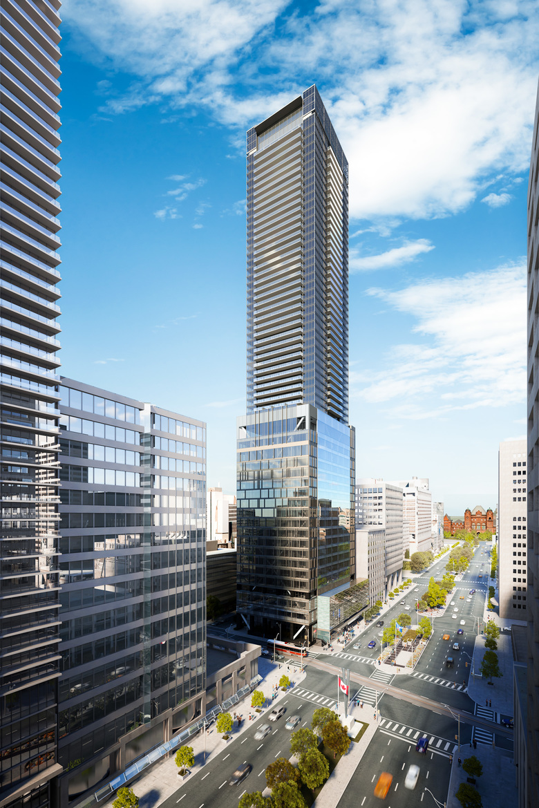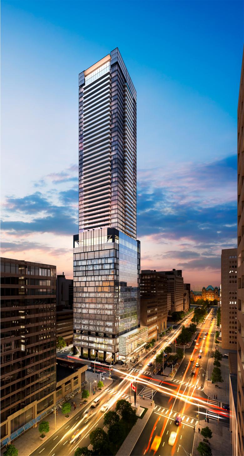 This development intensification project includes major enhancements to the existing 18 storey office building by incorporating a striking new facade, exterior skin, and a distinctive and sophisticated three storey podium on one of Toronto’s oldest and grandest boulevards. The project includes the addition of 37 storeys of residential condominiums and shared amenity space above the existing 18 storey office structure. A total of approximately 453 residential units are proposed within a mix of one-bedroom units to three-bedroom family units. Two full floors will be dedicated to 3,251 m2 of shared amenity space. The total area of office space within the existing building is proposed to be retained as part of the development intensification project.