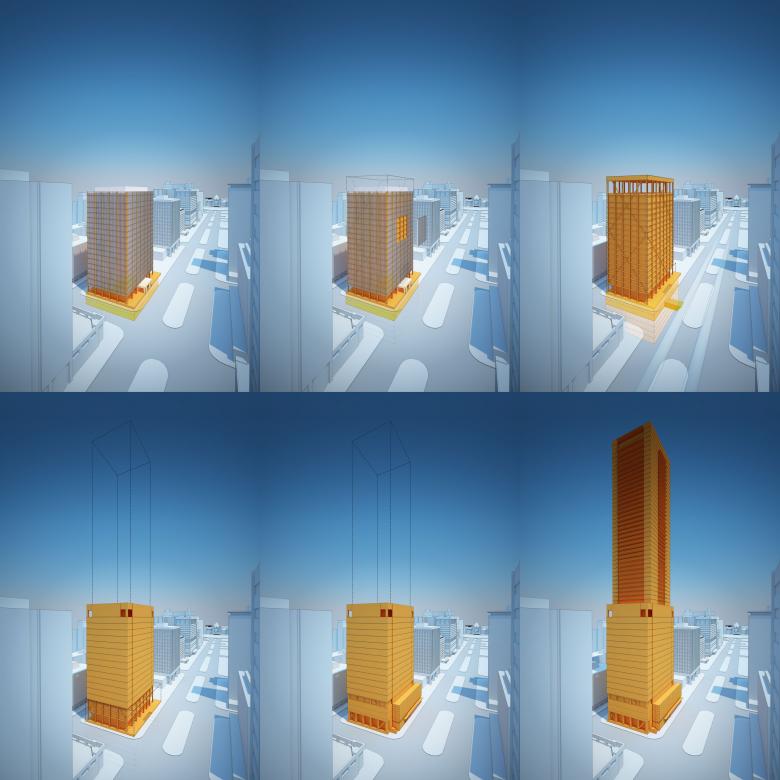 There are also new horizontal perimeter steel beams along the face of the existing building exterior and cross bracing to attract the lateral load from the additional residential floors. Long span transfer beams will be utilized in the 20th floor. These transfer beams will distribute the load of the new tower directly to the new vertical steel structure that surrounds the existing building. The new vertical structure will go down to the foundation rock without stressing any of the existing structure. Overall the mixed use project will possess a total gross floor area of approximately 65,021 m2 comprising of 26,306m2. of the existing retained commercial building and 38,714m2 of new residential area
