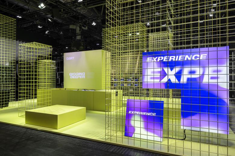 Die LED-Flächen in den Stahlgitter-Cages erweitern die zentrale Botschaft: Content, Space, Experience. Immersive Visualisierungen machen sichtbar, wie diese Ebenen ineinandergreifen. Im Deep Dive wird deutlich, dass starke Markenerlebnisse nicht aus Einzeldisziplinen entstehen, sondern aus ihrem Zusammenspiel. Strategie, Kreation und Technologie wirken hier nicht nebeneinander, sondern miteinander.