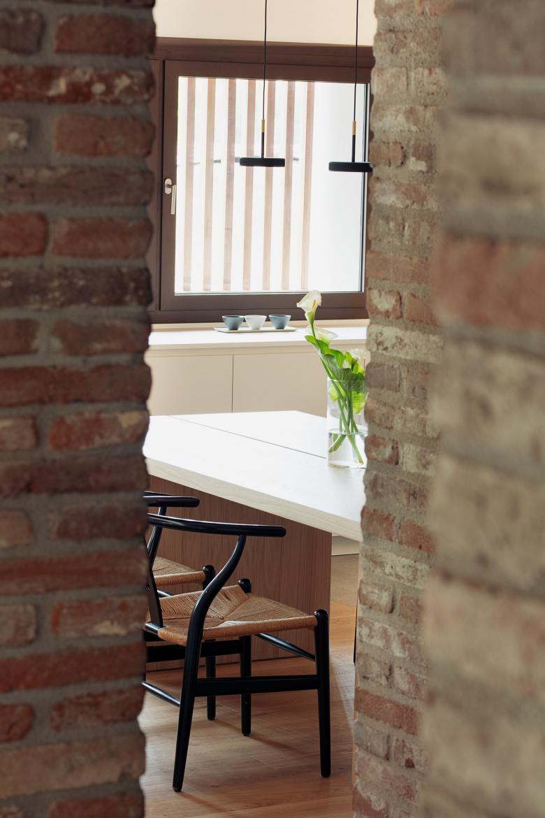Gli elementi di distribuzione richiamano la tipologia tipica della casa colonica della campagna veneta.