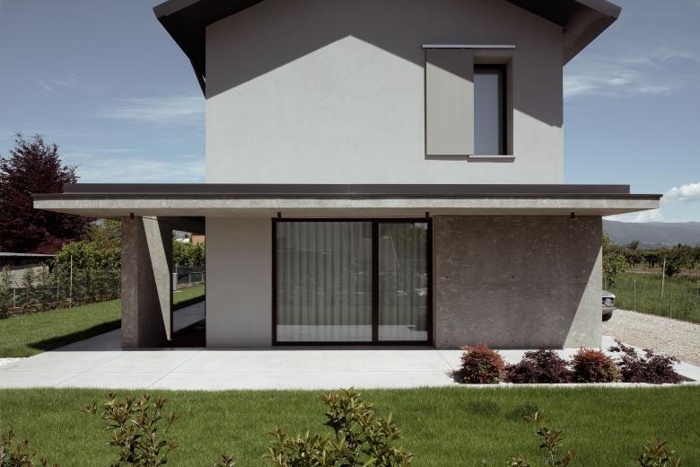 Progetto per una nuova abitazione singola nella campagna Veneta. Le forme del volume architettonico nascono dallo studio e dalla sintesi delle abitazioni tipiche del contesto, caratterizzato da abitazioni su due piani con tetto a due falde.