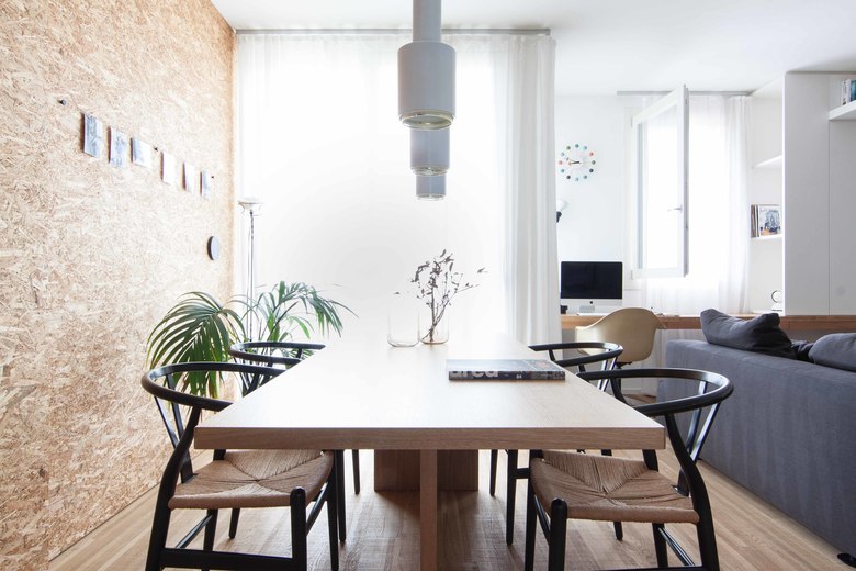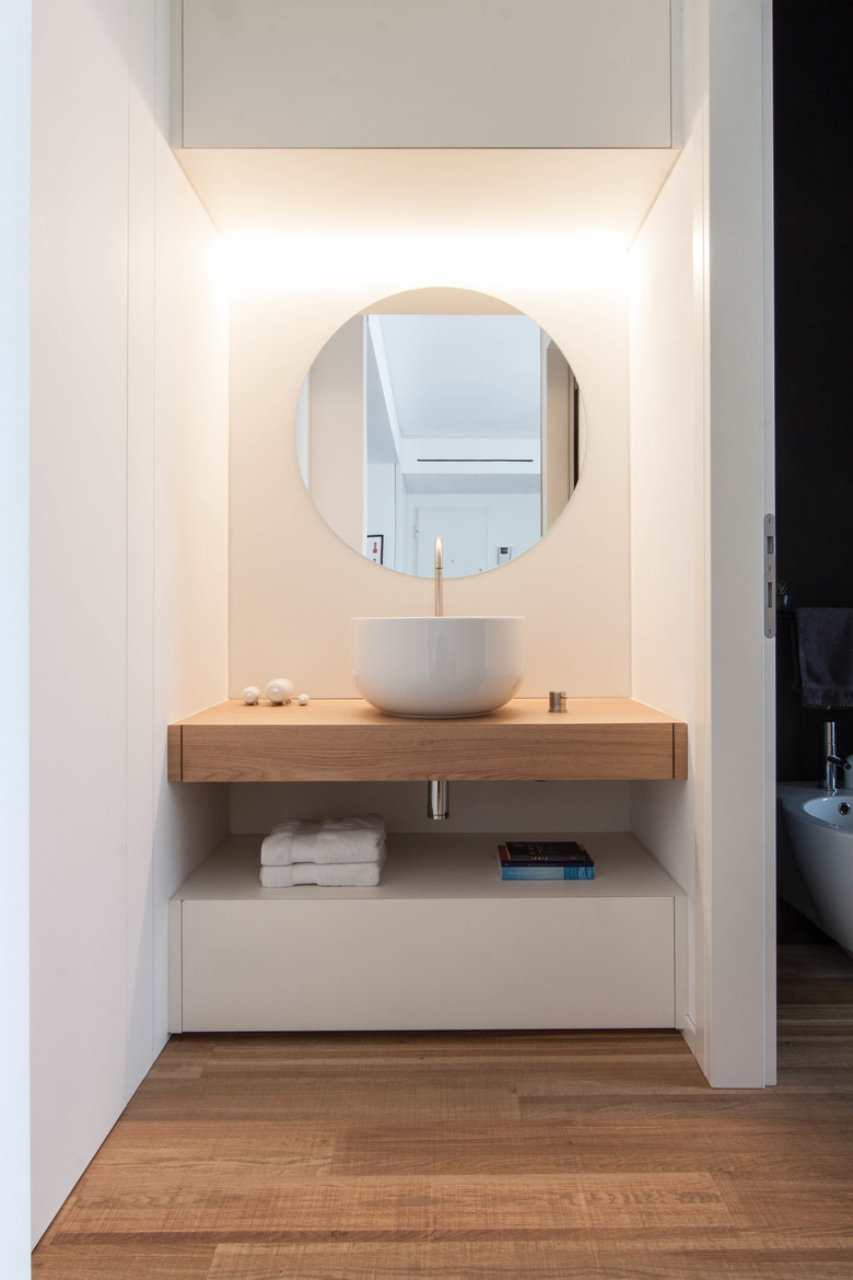 L’intervento prevede la progettazione e la realizzazione di soluzioni di arredo su misura che utilizzano colori neutri e prediligono la matericità, massimizzando il contenimento e gerarchizzando lo spazio interno senza occluderlo, esaltando la luce naturale delle grandi vetrate.
