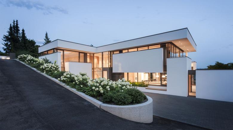 Genau das wurde es: ein schönes Haus. Komplett, klar und ausgewogen, kompromisslos modern, luxuriös und zurückhaltend zugleich. Es fügt sich in seine Umgebung.