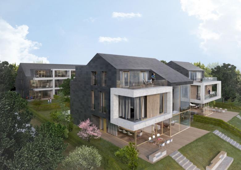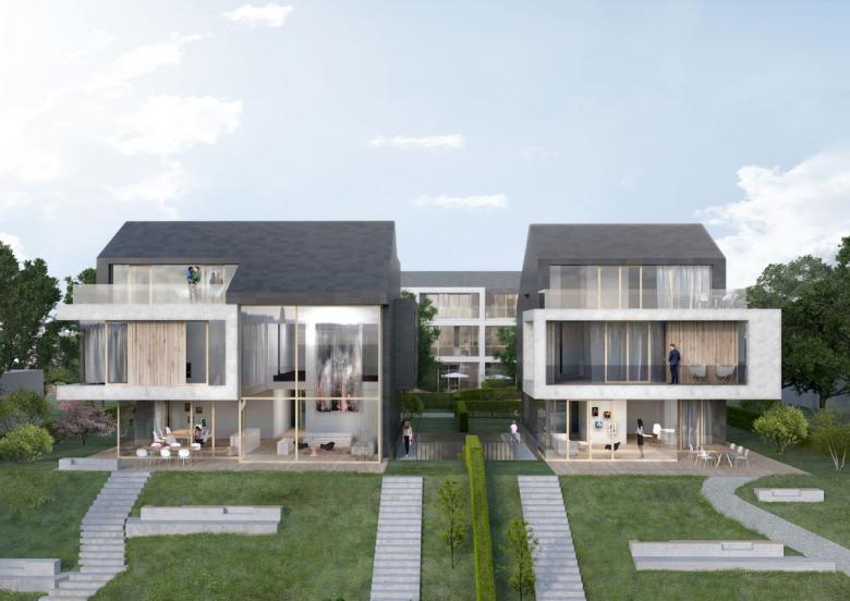 Am Rhein im Düsseldorfer Norden soll ein Ensemble von drei Wohnhäusern, bestehend aus zwei freistehende Einfamilienhäuser und einem Mehrfamilienhaus mit Tiefgarage, in einer zusammenhängenden Architektursprache von hoher und moderner Qualität errichtet werden. Ziel ist ein Gesamterlebnis von großer urbaner und landschaftlicher Dichte, gepaart mit fantastischen Aussichten auf den Rhein zu generieren.