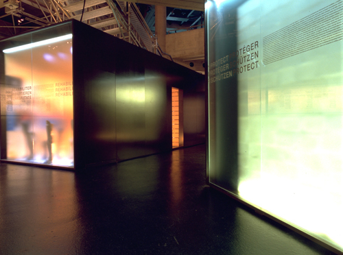 Durch die Neugestaltung des Bereiches «heute» soll die aktuelle, weltweite Tätigkeit der Rotkreuzorganisation innerhalb eines historisch ausgerichteten Museums verstärkt zum Ausdruck kommen. Die Ausstellungskonzeption setzt ein aktives Sich-Einlassen-Wollen des Publikums voraus; sie will nicht die Emotion, sondern die Reflexion auslösen. Rund um einen zentralen Sitzbereich sind fünf thematische Ausstellungscontainer angeordnet. Im Vordergrund stehen die ruhige Atmosphäre des Raumes, das Spiel mit dem Licht und den Transparenzen und nicht Pathos oder Schock der Bilder. Jeder entscheidet, welche Räume er besuchen will und in welcher Reihenfolge. Durch den kombinierten Einsatz traditioneller und moderner Medien (Objekte, Wandbilder, Plakate, Texte, Tonbänder, Fotografien, Film, Video, Internet) soll das breite, vorwiegend junge Publikum auf verschiedenen Ebenen angesprochen werden.