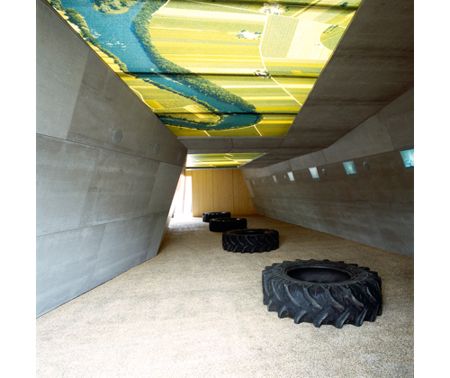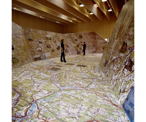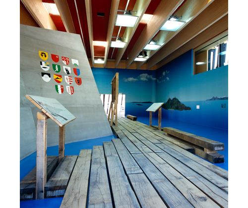 Bietet die gebaute Schweiz noch Raum für Träume und Zukunftsentwürfe? Ausgehend von dieser Frage lancierten die Expo.02 und der VSKB einen nationalen Wettbewerb. Aus der Vielzahl von Eingaben wurden fünf Arbeiten ausgewählt. Die Aufgabe der Ausstellungsarchitekten bestand darin, einen Ausstellungsraum zu konzipieren, der die Eigenständigkeit der Beiträge berücksichtigt, gleichzeitig aber auch die allgemeine Aussage formuliert. Die Szenografie privilegiert bewusst keine der fünf Ideen, weil alle, zusammen mit vielen anderen, unsere Zukunft prägen werden. Die Grundstruktur gleicht einem abstrahierten Landschaftsmodell, mit einer Abfolge von Bergund Talräumen. Jeder Beitrag erhält einen eigenen Raum, bestimmt durch die von den Autoren gewählten Medien. Zwischen den einzelnen Bereichen kehrt der Besucher jeweils in den verglasten Umgang zurück, wo eine Textlandschaft ein Bild der Schweiz zwischen Bewegung und Stillstand zeichnet.