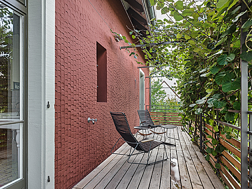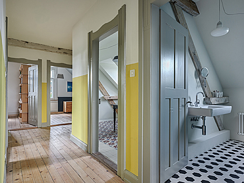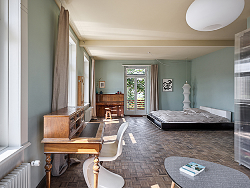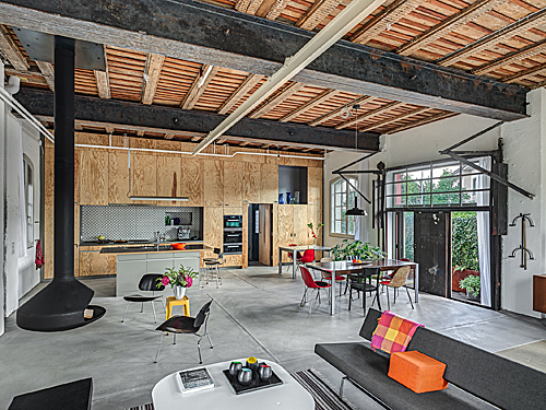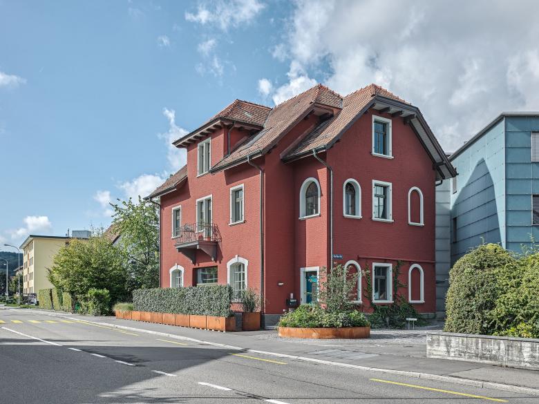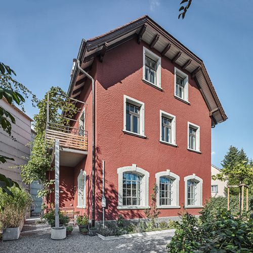 Das 1909 am Rande des Dorfkerns erbaute Handwerkerhaus wurde unter Einbezug der Werkstatt im Erdgeschoss und der beiden darüberliegenden Wohnungen als Einfamilienhaus umgenutzt. Der Eingriff wurde jedoch so konzipiert, dass das Gebäude langfristig in autonomen Nutzungseinheiten unterteilbar bleibt. Des Weiteren wurden die haustechnischen Installationen gründlich erneuert und die notwendigen energietechnischen Verbesserungen vorgenommen. Das Augenmerk richtete sich dabei auf den Erhalt der vorhandenen Materialien und Konstruktionen in ihrem vorgefundenen Zustand. Im Laufe des Umbaus freigelegten Oberflächen (Wandmalereien, Bodenbeläge, usw) wurden mit minimalen Mitteln Instand gesetzt. Die ehemalige Werkstatt im Erdgeschoss wurde als Wohn-, Koch- und Essraum zum Mittelpunkt des Familienlebens ausgebaut. Die rauhe Materialisierung, die Freilegung der mächtigen Tragstruktur, der Erhalt der nutzungstypischen Bauteile (Industriefenster, Garagentor, Kranbahn) verleihen dem Raum seine einmalige Atmosphäre. Die beiden Wohnungen in den Obergeschossen wurden als Eltern-, bzw. Kindergeschoss umgebaut, wobei der umsichtige Umgang mit der grösstenteils erhaltenen Bausubstanz prägend war.