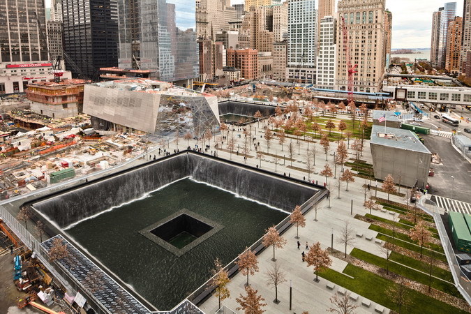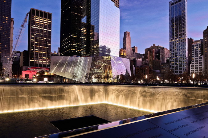 The Memorial site offers a reserved space for meditation and contemplation, centered around two reflecting pools that sit in the footprints of the original World Trade Center Towers. Lining the perimeter of each fountain is parapet of victims’ names, arranged and inscribed according to a system of “meaningful adjacencies.” The fountains rest within a new plaza that presents carefully chosen green space that acts as a sacred ground for those coming to honor the victims, while also integrating the Memorial into the surrounding city.
