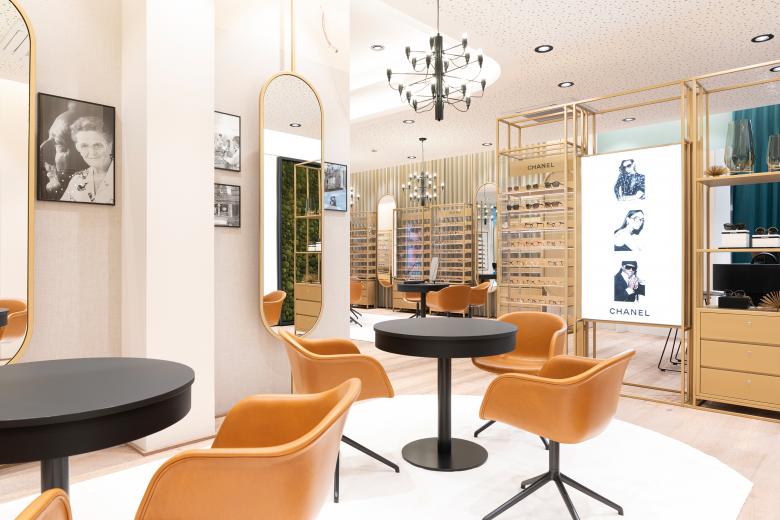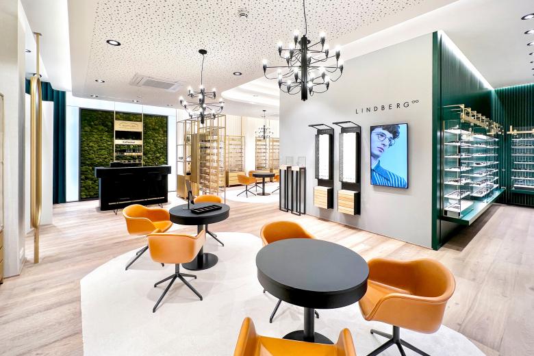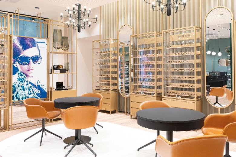 Wir haben das Projekt gelöst, indem wir ein exklusives Designkonzept entwickelt haben, das perfekt zur Zielgruppe von „Rottler Exklusiv“ passt. Das Farbkonzept aus Dunkelgrün, Petrol, Minze, mattem Schwarz und Perlgold betont die luxuriöse Atmosphäre, während wir die hohen Decken durch filigran montierte Spiegel und Kronleuchter in Szene gesetzt haben. Indirekt beleuchtete Vorhänge, ein warmer Echtholzboden und eine abgehängte Decke schaffen zusätzlich eine gemütliche Atmosphäre. Ein wichtiger Teil des Projekts war die Verbindung zwischen dem neuen Exklusivgeschäft und dem angrenzenden, regulären Rottler-Geschäft. Diese Herausforderung haben wir durch die Planung von zwei Durchgängen gelöst, die die beiden Bereiche harmonisch miteinander verbinden und den Kunden ein fließendes Einkaufserlebnis bieten. Die Sicherheit der hochwertigen Brillen spielte ebenfalls eine große Rolle. Hier haben wir eine spezielle Lösung entwickelt, indem wir die grüne Präsentationswand mit Glasschiebetüren ausgestattet und alle Vitrinen mit elektronischen Schlössern versehen haben. Das gewährleistet sowohl den Schutz der wertvollen Ware als auch eine elegante Präsentation.
