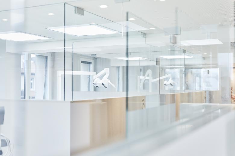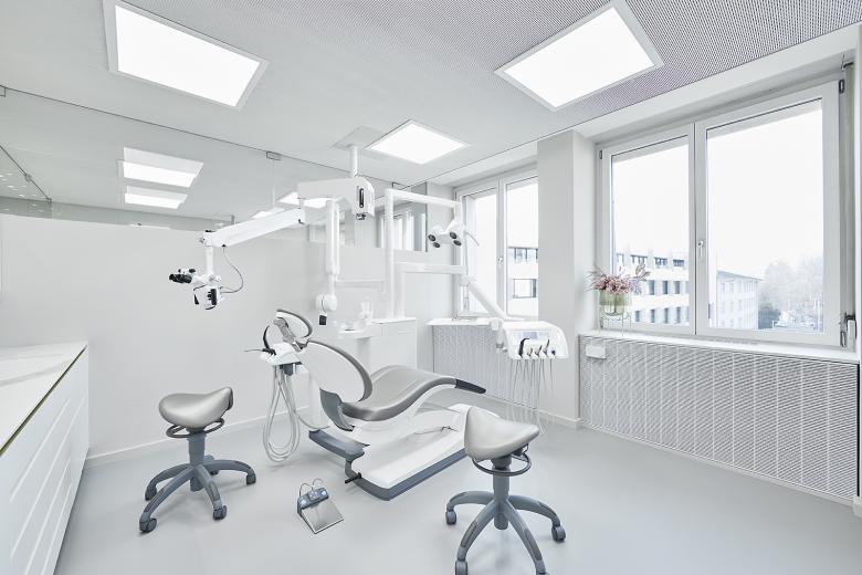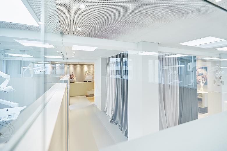 Die Praxis besticht durch das warme Entrée im Boutique – Charakter. Der loungige Wartebereich mit Wohnzimmercharakter liegt im Zentrum und kontrastiert mit der klaren und reinen Architektur der Behandlungsräume, die sich auch auf einem erhöhten Niveau befinden.