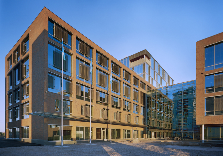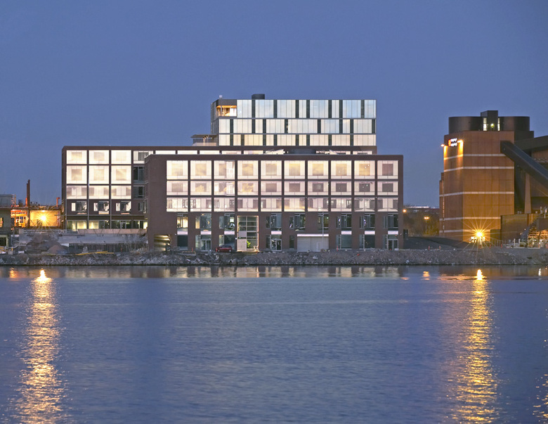 The working facilities are universal in nature and modifiable, with emphasis on openness and interaction. There are several different end-users in the building; Ahlström, Alko, BaseAn, Comptel and Fennovoima taking up most of the space. Common facilities include a restaurant and a conference centre. Exhibition facilities on the street level enliven the shore promenade. Parking space is provided behind these in the basement, as part of a public parking garage.