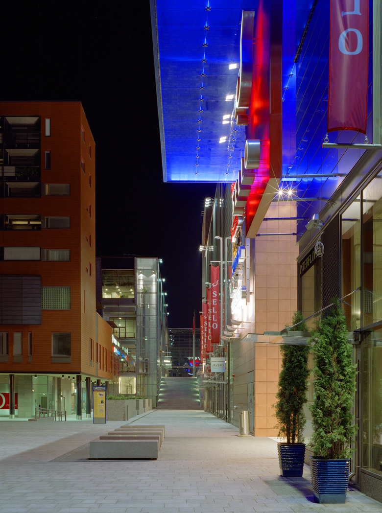 Leppävaara is one of the five regional centres of the City of Espoo. Built in the core of the area in three phases, Sello combines and interlaces the functions of a traditional city centre: cultural services, shopping, dwelling and workplaces. Sello is part of the surrounding urban structure and at the same time its focus. With the adjoining public transport terminals, it is also the hub of a wide sphere of influence that extends over the city boundaries.