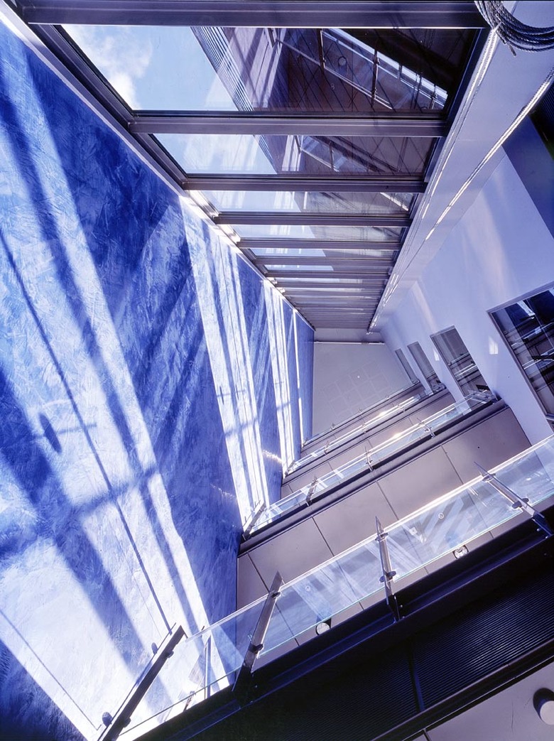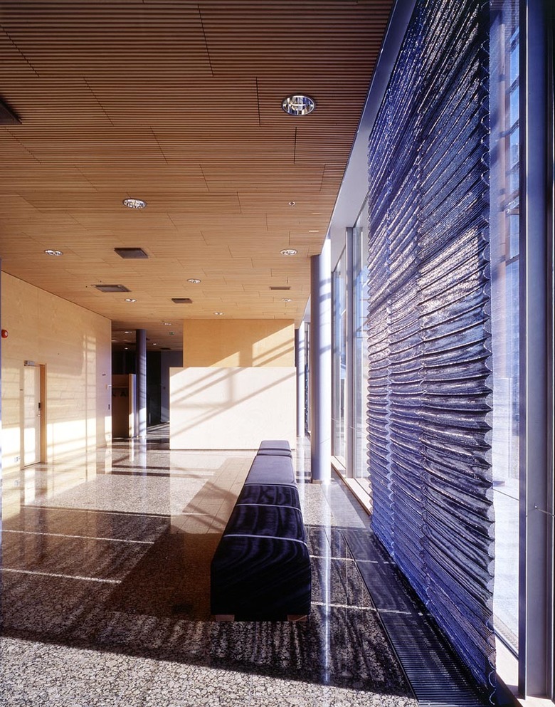 The frame of the building consists of steel columns and beams and intermediate floor components of reinforced concrete. The basements were cast on site, and the exterior walls are steel-structured lightweight components. The facades are almost throughout a double-skin structure. The materials are glass and weatherproof Cor-Ten steel, in parts of the tower acid-proof steel. The double-skin facade was chosen for architectural and cityscape reasons but also in pursuit of saving in the HPAC investments and energy consumption, diminishing the impact of weather on the exterior walls and their details, reduce the costs of caretaking and maintenance, and improving noise protection and information security. The use of Cor-Ten was based on its ecological qualities, such as total recyclability. This material connects the building with the red-brick world of the old office and industrial milieu of Ruoholahti. Cor-Ten is technical but simultaneously authentic and “robust”, like a natural material.