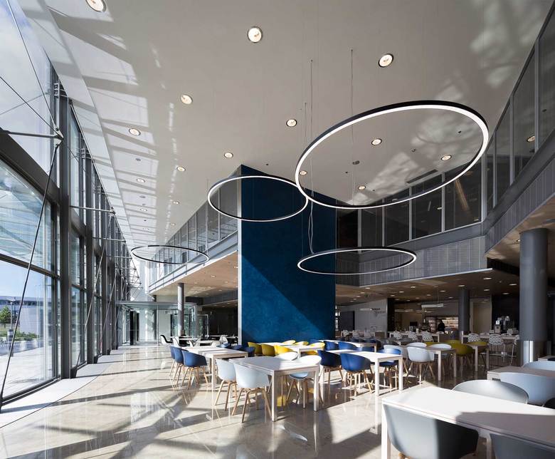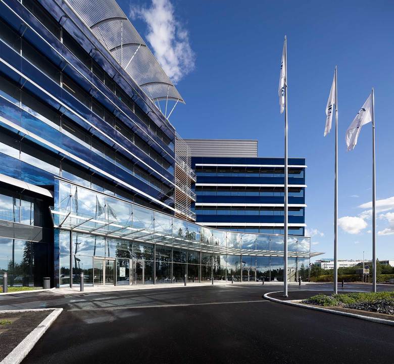 The blue HOTT building near the Helsinki Airport was designed and constructed for the companies of the Finnair Group. The floor plan is flexible: the spaces can be adapted to meet the varying needs of different tenants and organisational changes during the projected hundred-year life cycle of the building. The area of one storey can be divided into as many as six separate office premises. Nearly 900 employees work in the building.