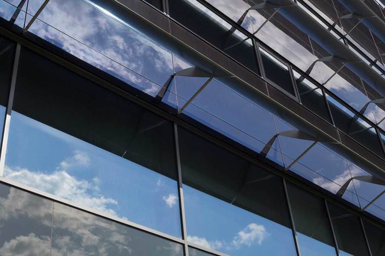 As for structures, the HOTT office centre is a hybrid. Besides steel and concrete, wood and aluminium are materials used in the frames of the different parts of the building. The basement floors were cast on site, and the frame of the office storeys was made of concrete-filled steel columns and steel beams. The planes consist of hollow-core slabs, and the stairwells have structures made of prefabricated concrete units. The frames of the high entrance lobbies are steel and those of the facade units are laminated wood. The building is heated and cooled with geothermal heat: 34 drilled holes, eight kilometres in total length, provide the required heat in winter and cooling in summer. All equipment was chosen with consideration of electricity and water consumption: ventilation is optimised by adjusting it to meet the needs of different spaces, lighting is regulated automatically according to daylight level and the movement of people, and all water installations are water saving.