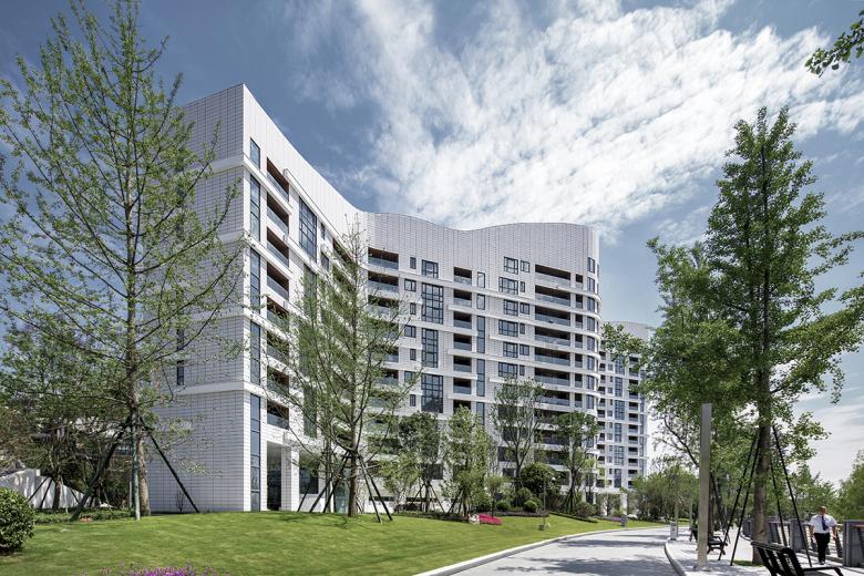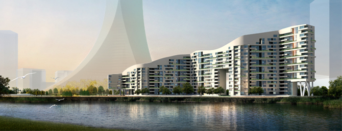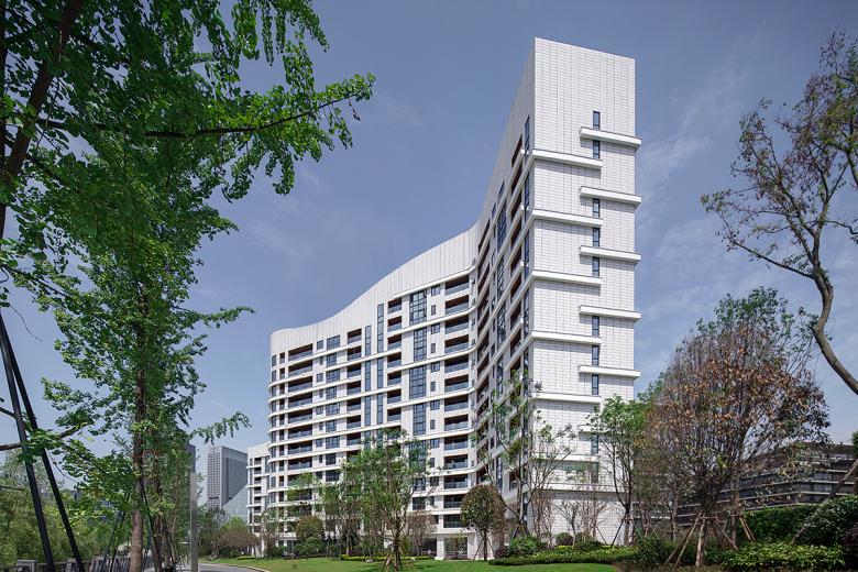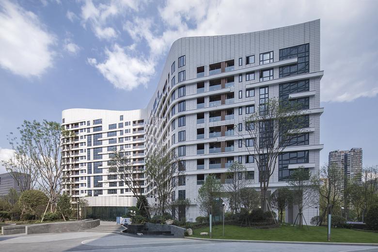 Icon Apartments, a block of flats with a gross floor area of 25,000 m², was designed for a riverside site. Its form associating with a gigantic Chinese dragon that rises up from the river, it serves as a landmark and gate for those who arrive in the city. The ceramic facade of the undulating volume shines light in the fog that often enshrouds the city. Over time, the planter boxes on the linear balconies will turn the facade green.