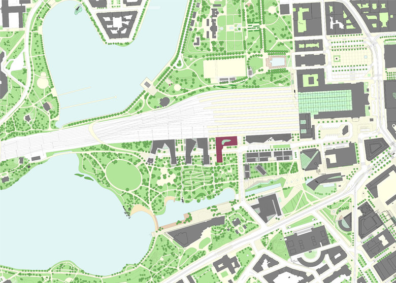 The unique context of the new building in Töölönlahti comprises monuments of various periods: the National Museum, Helsinki Railway Station, the Parliament House and its annex, Finlandia Hall, Kiasma. When the Biofore House was designed, there was no knowledge of the nearest to-be neighbours.