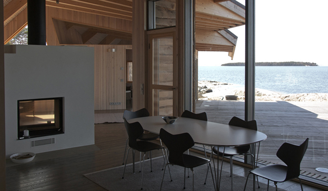 A small remote island in the Gullkrona archipelago offers a panorama of changing seasons in the northern Baltic: late sunsets fill open skies and early sunrises dramatise rocky islands. In spring, constant birdsong greets the end of severe winter. Warm calm midsummer days are filled with scents of pine and juniper. Autumn storms drive huge waves over the rocks to freeze gradually, generating abstract formations of drifting ice. Finally, all is covered by snow. The villa is built to experience all this and counteract periods of urban hard work.