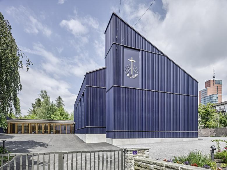 Ein auf dem Grundstück lastendes Servitut verhinderte eine Verdichtung in Form einer kombinierten Wohn- und Kirchennutzung und zwang zur Erhaltung von Volumen und Fussabdruck. Dennoch wurde dem konventionellen Satteldach an der Frontfassade ein vorgefertigtes Pultdachelement mit Oberlicht aufgesetzt, was dem christlichen Gotteshaus innen wie aussen eine feierliche Sakralität verleiht.