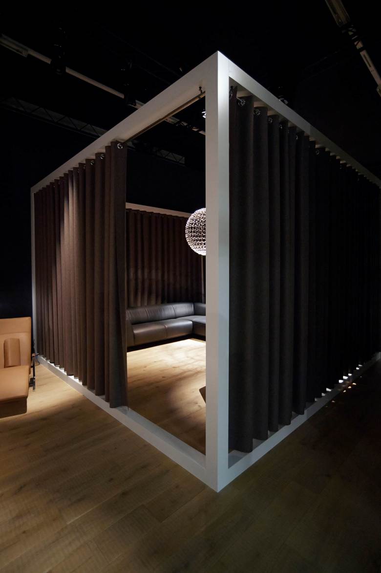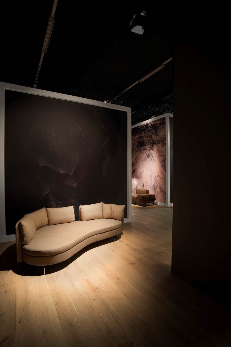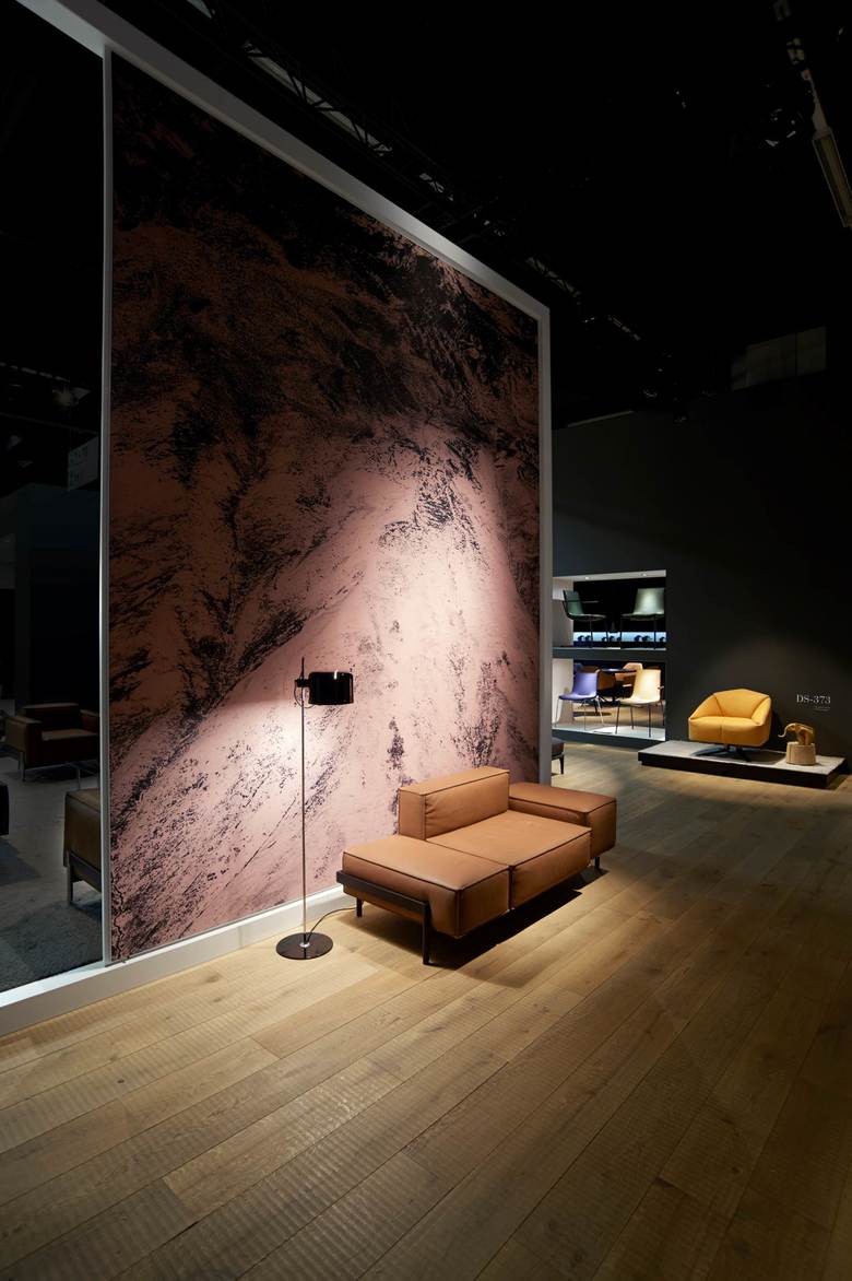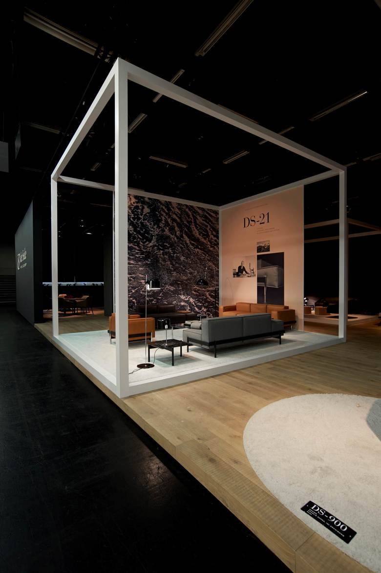 Hollin + Radoske sind mit dem Messeauftritt des Schweizer Premium Möbelherstellers de Sede für die IMM Cologne 2016 beauftragt. Als vierten Messestand in Folge für das Schweizer Designlabel verantwortet das Frankfurter Architekturbüro in Kooperation mit dem Kommunikationsbüro Projekt Triangle die Markenarchitektur des Schweizer Labels. Des Weiteren sind Hollin + Radoske ebenfalls mit der Farb- und Materialauswahl der auf der IMM Cologne 2016 präsentierten neuen Kollektion des Herstellers betraut. Bekannt für die Gestaltung von hochwertigen und unverkennbaren Innenräumen, die den Charakter einer Marke in eine qualitätsvolle Raumarchitektur übersetzt, transportiert auch der Messeauftritt von de Sede auf der Kölner Möbelmesse IMM Cologne 2016 ein klares Markenbild und ist zugleich Aushängeschild für die Markensensibilität von Hollin + Radoske. Zentraler Ausgangspunkt der Gestaltung ist der Anspruch, die neue Kollektion mit der langjährigen Tradition des Schweizer Unternehmens in Einklang zu bringen sowie ein stringentes Gesamterlebnis von Architektur und Möbeln zu schaffen. Mit raumhohen, schwarz-pulverbeschichteten Stahlrahmen gliedern die Architekten den Stand in offene Räume, die so eine Bühne für die ausgestellten Möbel formieren. Die Wände des Standes sind mit großformatigen, beeindruckenden Aufnahmen von Schweizer Landschaften bespielt, die den Hintergrund und die virtuelle Basis des Markenauftritts ausmachen. Die Farben Schwarz, Rot und Weiß sorgen in Verbindung mit dem Einsatz von Holz für einen cleanen und reduzierten Auftritt mit subtilem Schweizer Lokalkolorit.
