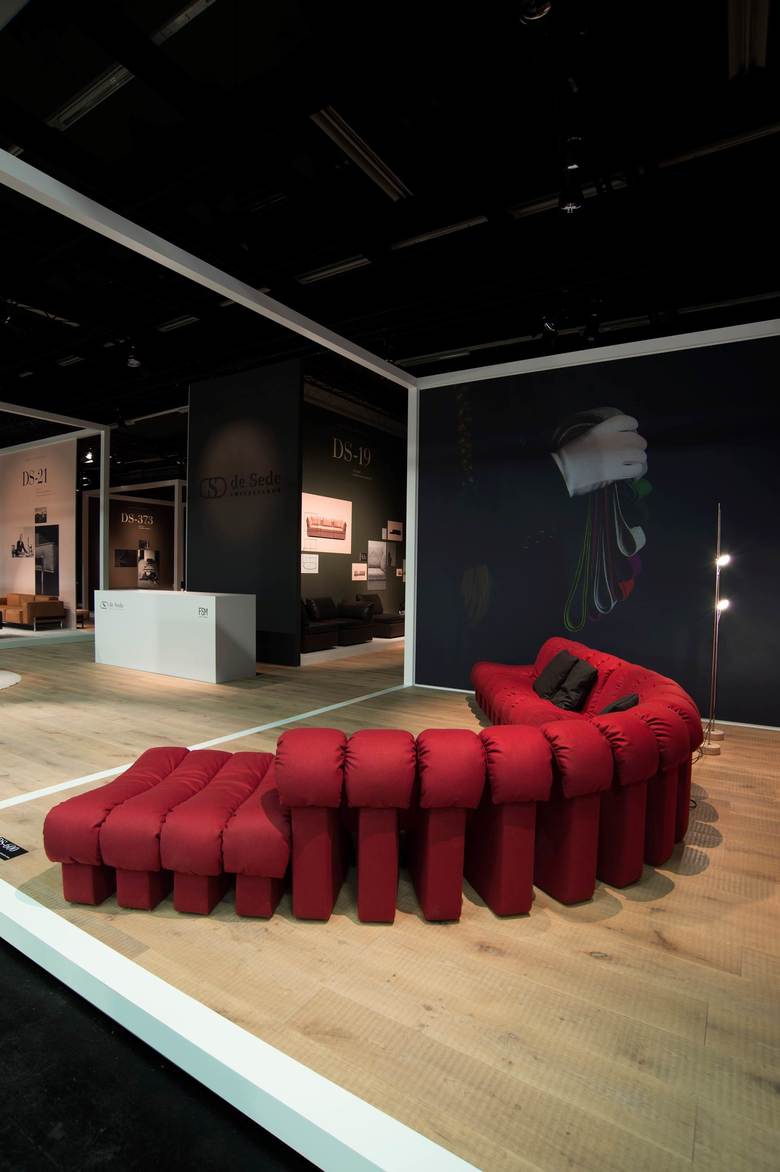 Hollin + Radoske sind mit dem Messeauftritt des Schweizer Premium Möbelherstellers de Sede für die IMM Cologne 2016 beauftragt. Als vierten Messestand in Folge für das Schweizer Designlabel verantwortet das Frankfurter Architekturbüro in Kooperation mit dem Kommunikationsbüro Projekt Triangle die Markenarchitektur des Schweizer Labels. Des Weiteren sind Hollin + Radoske ebenfalls mit der Farb- und Materialauswahl der auf der IMM Cologne 2016 präsentierten neuen Kollektion des Herstellers betraut. Bekannt für die Gestaltung von hochwertigen und unverkennbaren Innenräumen, die den Charakter einer Marke in eine qualitätsvolle Raumarchitektur übersetzt, transportiert auch der Messeauftritt von de Sede auf der Kölner Möbelmesse IMM Cologne 2016 ein klares Markenbild und ist zugleich Aushängeschild für die Markensensibilität von Hollin + Radoske. Zentraler Ausgangspunkt der Gestaltung ist der Anspruch, die neue Kollektion mit der langjährigen Tradition des Schweizer Unternehmens in Einklang zu bringen sowie ein stringentes Gesamterlebnis von Architektur und Möbeln zu schaffen. Mit raumhohen, schwarz-pulverbeschichteten Stahlrahmen gliedern die Architekten den Stand in offene Räume, die so eine Bühne für die ausgestellten Möbel formieren. Die Wände des Standes sind mit großformatigen, beeindruckenden Aufnahmen von Schweizer Landschaften bespielt, die den Hintergrund und die virtuelle Basis des Markenauftritts ausmachen. Die Farben Schwarz, Rot und Weiß sorgen in Verbindung mit dem Einsatz von Holz für einen cleanen und reduzierten Auftritt mit subtilem Schweizer Lokalkolorit. Ort Köln 2016