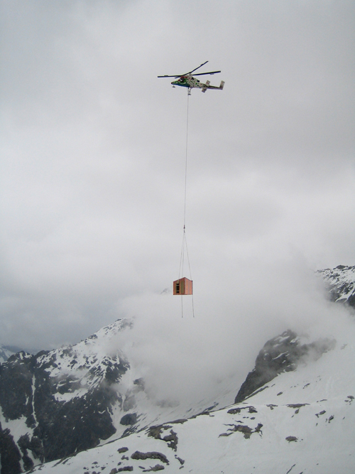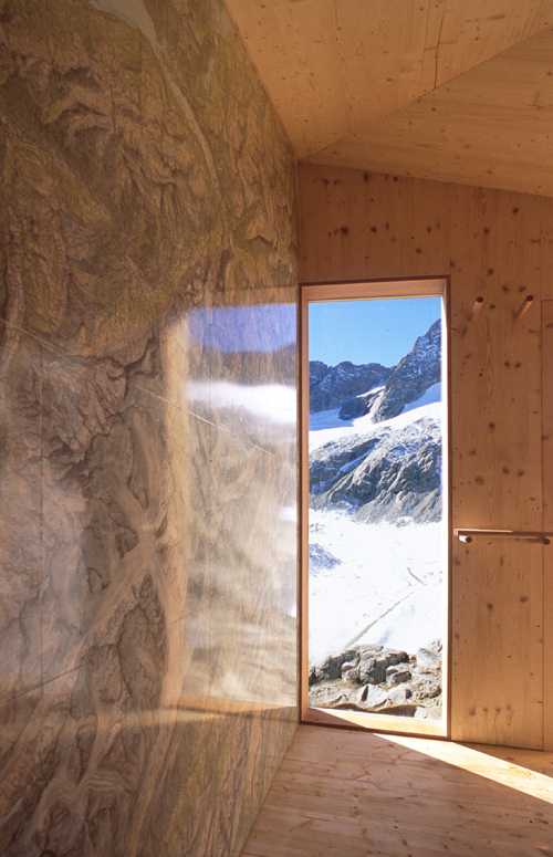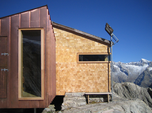 Der Anbau wurde im Tal vorfabriziert und als Ganzes mit dem Helikopter auf 2521m transportiert. Um einen derartigen Lufttransport zu ermöglichen, musste das Gewicht der Konstruktion gering gehalten werden, was durch eine Kompaktkonstruktion aus Holz mit äusserer Kupferverkleidung erreicht wurde.