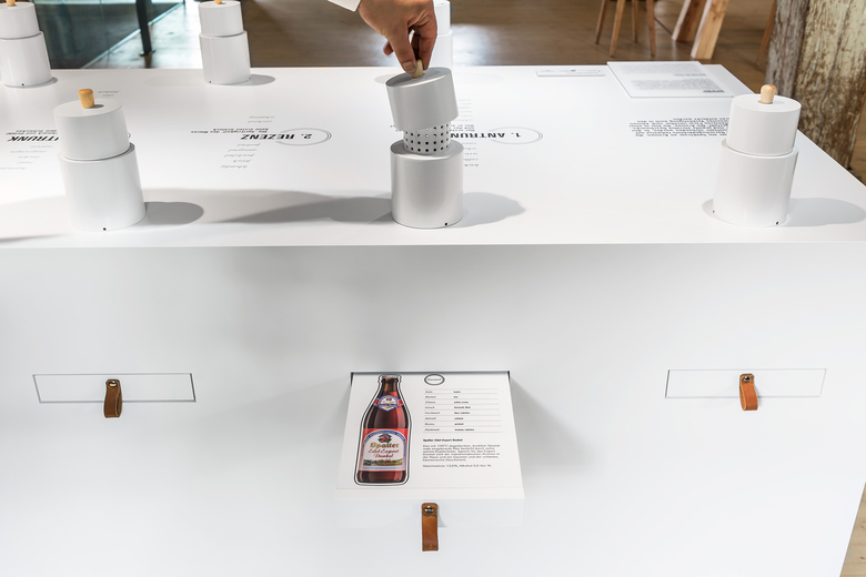 Die Themenbereiche werden jeweils von einem Medienexponat eröffnet. Zum Auftakt bietet eine überdimensionale, interaktive Faltkarte einen virtuellen Rundgang durch die Stadt an. Wie der Zyklus des Hopfens den Rhythmus der Stadt und ihrer Bewohner bestimmt, wird im „Panorama Hopfenjahr“ erlebbar. Der 180-Grad Film nimmt den Besucher mit auf eine Zeitreise durch zwölf Monate Leben in Spalt mit dem Hopfen. Im begehbaren Braukessel steht alleine die Bierherstellung mit ihrer historischen Entwicklung und den biochemischen Vorgängen im Mittelpunkt. Der Interaktive Biertisch zeigt die Bierkultur in verschiedenen Ländern, in denen Spalter Hopfen zum Brauen verwendet wird. Eine Bierflasche wird hierfür auf ein Sensorfeld gestellt und löst das virtuelle Eindecken auf der Medienfläche aus, die die gesamte Tischplatte umfasst. Der sich deckende Tisch ist zusätzlich mit Fakten und Anekdoten zur Bierkultur der einzelnen Länder angereichert.