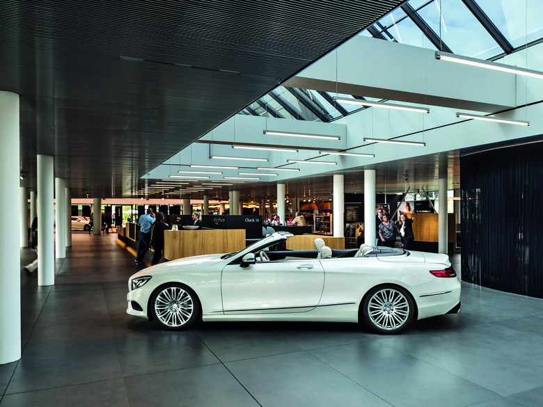 Es gibt kaum ein intensiveres Markenerlebnis, als die Abholung des eigenen Mercedes-Benz an seiner Produktionsstätte. Mit der Neugestaltung des Kundencenters Sindelfingen werden die Markenwerte „intelligent und emotional“ sowie die Designphilosophie „sinnlich und klar“ jetzt erlebbar. Einladende Lounges und Gastronomiebereiche, attraktive Shops und innovative Ausstellungsflächen geben den Besuchern jenes Gefühl von modernem Luxus, für das Mercedes-Benz wie keine zweite Marke steht.