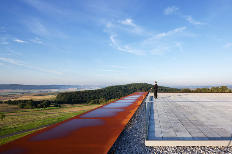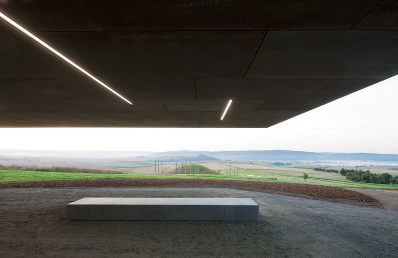 ADDED VALUE: Einem freigelegten archäologischen Fundstück gleich ragt der metallische Körper des Museums in die Landschaft und bildet ein Pendant zum Hügel des Keltengrabs. Mehr ein geheimnisvolles Objekt in der Landschaft als Architektur, will das Museum von seinen Besuchern entdeckt werden und wird selbst zum Dispositiv für die Entdeckung der Landschaft.