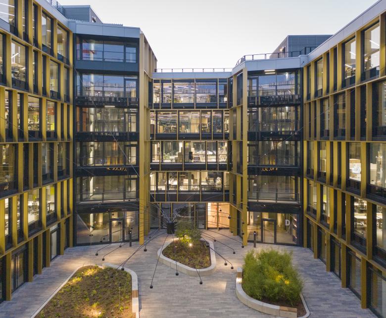 Tageslicht- und präsenzgesteuerte Beleuchtung im Inneren und außenliegender Sonnenschutz sorgen für optimierten Energieeintrag und machen das Gebäude im Winter und Sommer nachhaltig und wirtschaftlich.