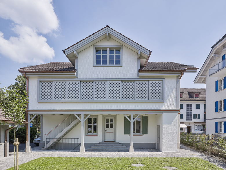 Der dreigeschossige, verputzte Riegelbau ist ein typischer Vertreter der Baumeisterarchitektur um 1890, der an die dörfliche Vergangenheit von Bümpliz erinnert. Das Haus verfügte ursprünglich über fünf Wohnungen, die mit ihren kammerartigen Grundrissen nicht mehr den aktuellen Bedürfnissen entsprachen. Mit der Zusammenlegung von zwei Wohnungen im Erd- und Obergeschoss konnte die bestehende schachbrettartige Typologie in eine kreuzförmige Figur transformiert werden. Küchen und Bäder liegen nun in deren Zentrum, während die Erschliessung entlang der Fassaden verläuft. Dadurch ist das Gebäude innenräumlich in seiner vollen Länge und Breite erlebbar. Das Dachgeschoss musste aus statischen Gründen in Richtung der quer verlaufenden Dachbinder unterteilt werden. Der Innenausbau orientiert sich konsequent am Bestand, Alt und Neu verschmelzen miteinander. Die neuen raumhohen Zimmertüren wurden in traditioneller Schreinerarbeit gestemmt ausgeführt, das Täfer entsprechend ergänzt. Das neue geölte Eichenparkett erinnert mit einem Fries aus Nussbaumholz an die einstige Kammerung. Die vorgelagerte Laube, die weiterhin der Erschliessung dient, erhielt zusätzliche Fenster und kann nun als besonnter Aussensitzplatz genutzt werden. Die Schindeleindeckung der Fassade wurde repariert und gestrichen, die neuen aussenliegenden Schiebeläden zitieren mit ihrer Lochung die ursprünglichen Schindeln. Das Projekt wurde 2016 mit dem Jurypreis Der beste Umbau prämiert.