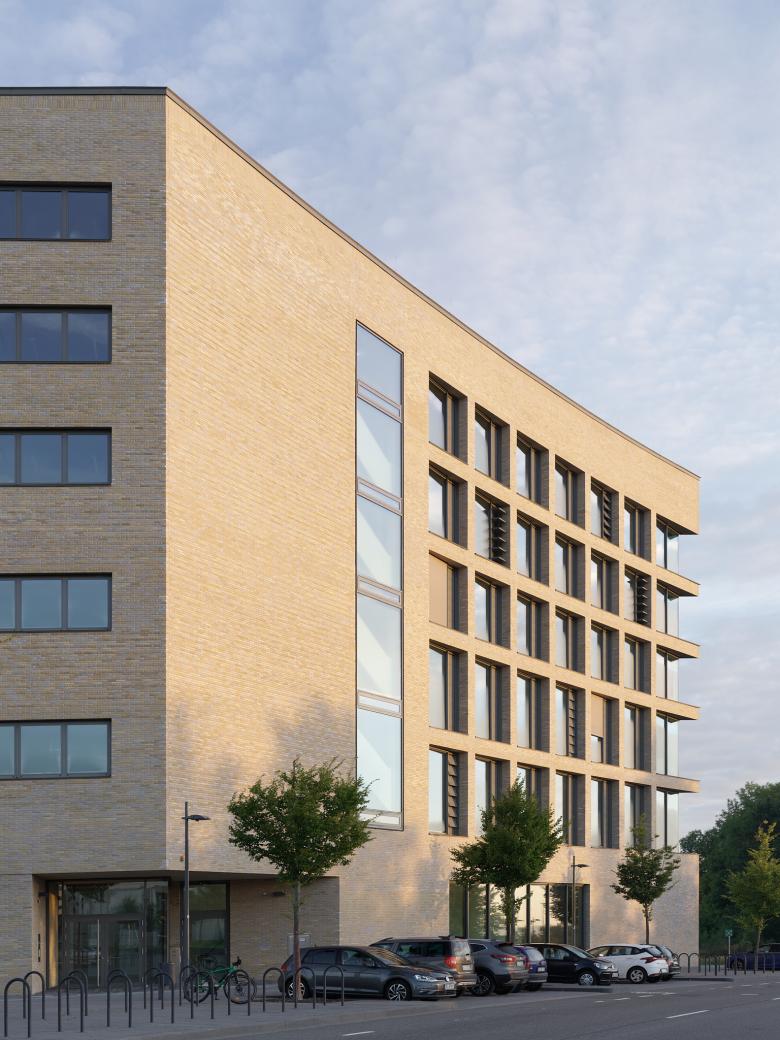Das Forschungsgebäude CARL (Center for Ageing, Reliability and Lifetime Prediction of Electrochemical and Power Electronic Systems) bildet mit einem 6-geschossigen Kopfbau das neue Entrée zum Wissenschaftscampus Melaten der RWTH Aachen. Hier werden 160 Mitarbeiter des Instituts ISEA zukünftig mit Blick auf ein angrenzendes Naturschutzgebiet Fragestellungen zur Alterung, Lebensdauer und Zuverlässigkeit von Leistungselektronik und Batterien erforschen. Der Entwurf stammt vom Architekturbüro kister scheithauer gross.