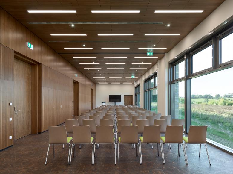 Im dritten Obergeschoss wurde eine Dachterasse mit Blick auf das Naturschutzgebiet realisiert, die unmittelbar an die Bibliothek angrenzt. Diese soll nicht nur als Bibliothek