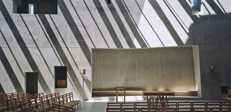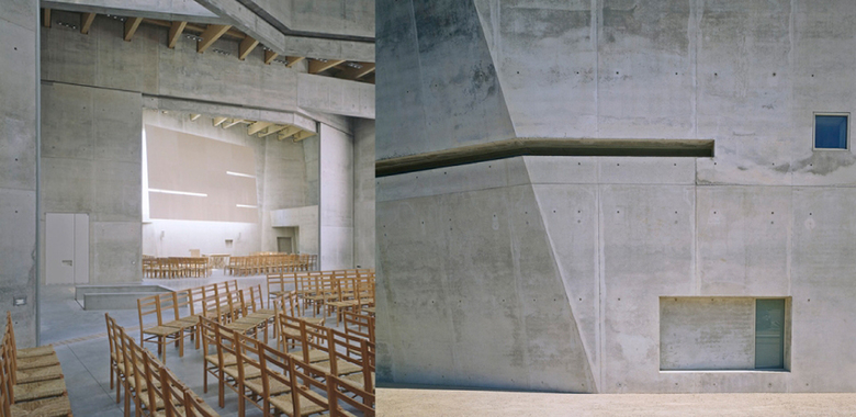 Im Herzen des neuen Stadtquartiers Rieselfeld entstand ein ganz besonderes Kirchengebäude. Zwei Kirchen, evangelisch und katholisch, sind in einem Gebäude vereint und lassen sich zu einem einzigen ökumenischen Kirchenraum verbinden. Wie im klassischen Kirchenbau besitzt die Doppelkirche drei Längsschiffe. Die beiden Seitenschiffe beherbergen die Kirchenräume. Dabei erstreckt sich die katholische Kirche über die gesamte Länge, während die kleinere, evangelische Kirche in ihrem räumlichen Schwerpunkt gegenüberliegt. Das Mittelschiff nimmt die gemeinsame Eingangshalle auf, deren raumhohe Wände zu den Kirchen bei Bedarf zur Seite geschoben werden können. Sind diese vier Wände geöffnet, entsteht der große ökumenische Raum. Alle Außen- und Innenwände, selbst die verschiebbaren Trennwände, sind in Sichtbetonqualität errichtet. Eine imposante Holzbalkendecke spannt sich zwischen die mächtigen Wände und fasst die drei Kirchenschiffe unter einem gemeinsamen Dach zusammen.