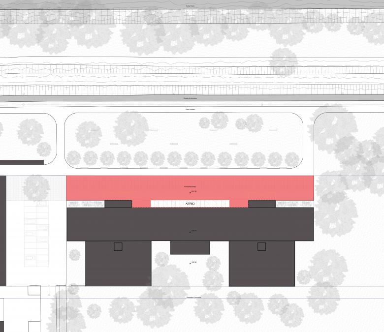 Il Liceo di Bellinzona fa parte del comparto Torretta che si estende dall’archivio di Stato a sud al bagno pubblico a nord; a ridosso della golena del fiume Ticino, definisce il limite di un’ampia area verde. Con l’ampliamento si conferma il principio di limite e di sviluppo lineare, che in futuro potrebbe essere ampliato ulteriormente verso nord. Con un nuovo corpo sospeso, aggiunto a quello esistente, si vuole dare una facciata verso lo spazio fluviale e creare uno spazio pubblico tramite un ampio porticato che diventa la nuova e rappresentativa entrata. L’entrata dal lato dello spazio fluviale coincide inoltre con il concetto della rete di vie ciclabili del bellinzonese.