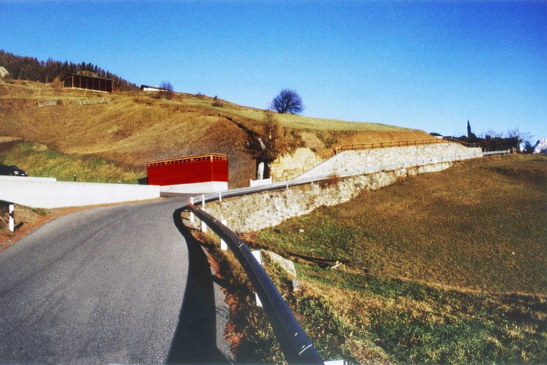 Il compito di progettare un posteggio a Guarda, villaggio nella bassa Engadina, è stato colto come occasione per ridisegnare l’arrivo al villaggio. Il comune, dichiarato monumento storico per il suo insieme ben conservato, vede un forte afflusso di turismo giornaliero.