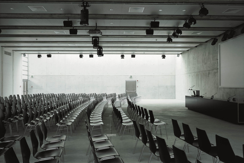 L’aula magna rappresenta l’elemento pubblico dell’Università verso la città e il luogo d’incontro degli studenti all’interno del campus.