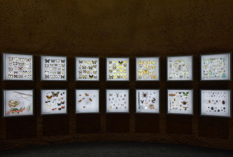 Inside, a precisely choreographed route through the building dissolves the divides between the human and the natural with barrier-free displays and immersive sensory experiences: an underground labyrinth disorients human senses and mimics the vision, hearing and movement of insects; a domed shotcrete hall contains the insectarium’s extraordinary collection; and a light-filled Grand Vivarium brings visitors into close contact with insects in their natural habitats.