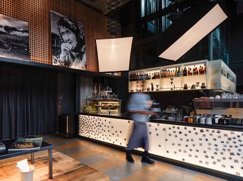 Located over an old Brewery founded by the Bomonti Brothers, the projects plays with images and photography related items to create a warm and nostalgic experience. Visitors will find essential features borrowed from a professional photo studio, such light boxes, diffusers, and umbrellas.
