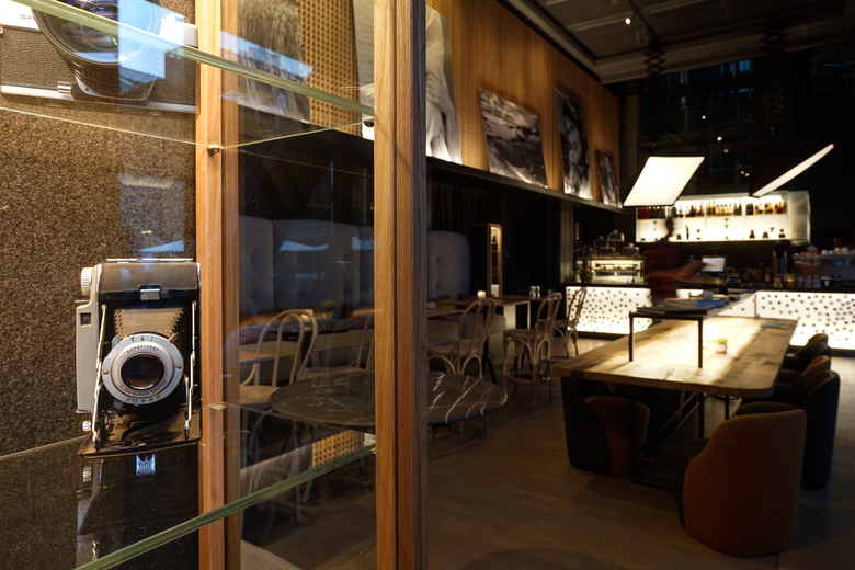 The photography theme is also visible in the bar, designed to look like a huge light box where the visitor can spot a collection of diapositive slides found by the studio members in Istanbul flea markets. Old camera showcases and photography books complete the setting and give a great atmosphere to this new and trendy space.