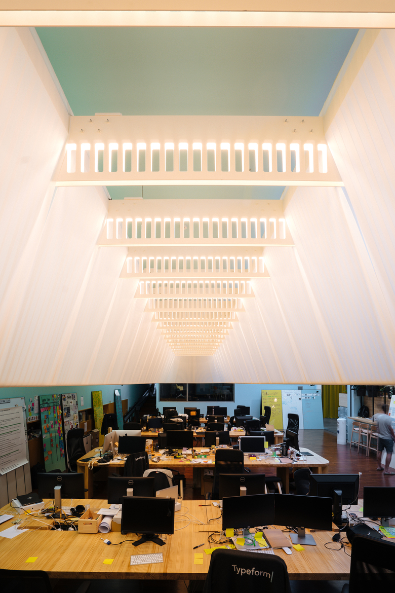 The startup launched by Robert and David, Typeform, was experiencing such a rapid growth that it needed to be relocated in a brand new head office. The Barcelona-based space ought to be, especially, huge. However, the Poblenou’s 2000 m2 venue they chose, owning multiple level ramps, a sensational terrace and large skylights, was too confined. Clashing with its structural conditions, Typeform’s DNA had to be strongly considered, then they definitely don’t embody what you would call a conventional company. They actually are a great multicultural and talented family, and as such they needed a comfortable space that met the requirements of a small community.