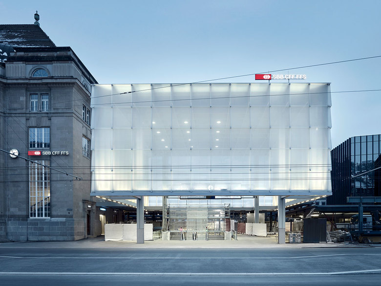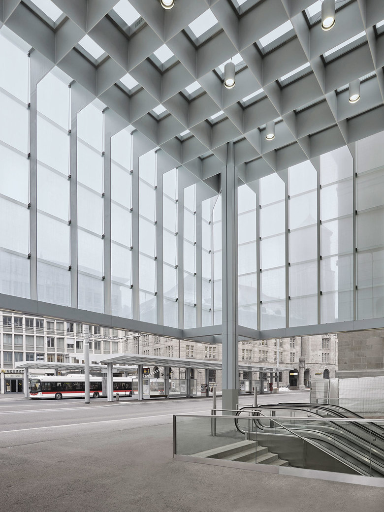 Die neue Ankunftshalle ist ein Schlüsselteilprojekt der Neugestaltung des Bahnhofplatzes St. Gallen. Die 26 m lange, 22.5 m breite, 14 m hohe Halle bildet das Tor zur Personenunterführung Ost, sie befindet sich zwischen Bahnhofsplatz, Gleisen und Bahnhofsgebäude.