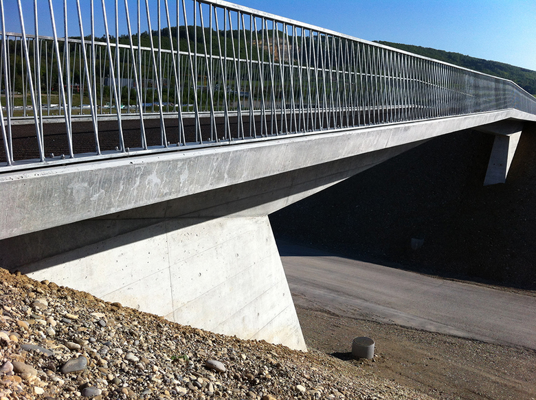 Die Brücke überspannt den Dammeinschnitt, in welchem die Verbindungsstrasse zwischen Olten und dem neuen Stadtteilprojekt Olten SüdWest auf dem Gelände der ehemaligen Kiesgrube verläuft. Für Fussgänger und Velofahrer führt der Weg über den bestehenden Damm und die Brücke.