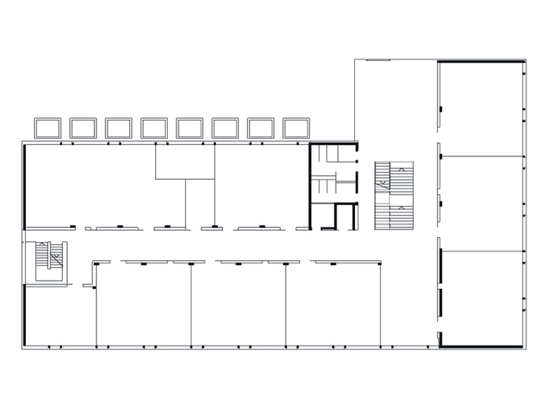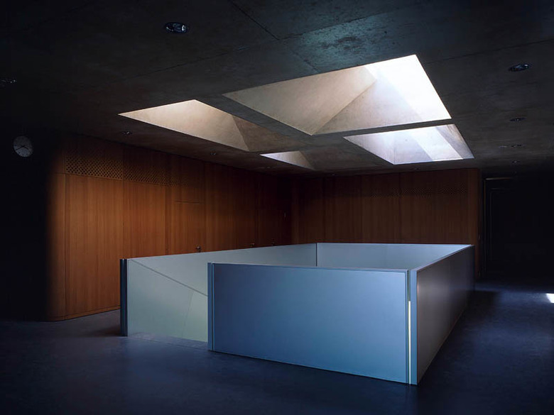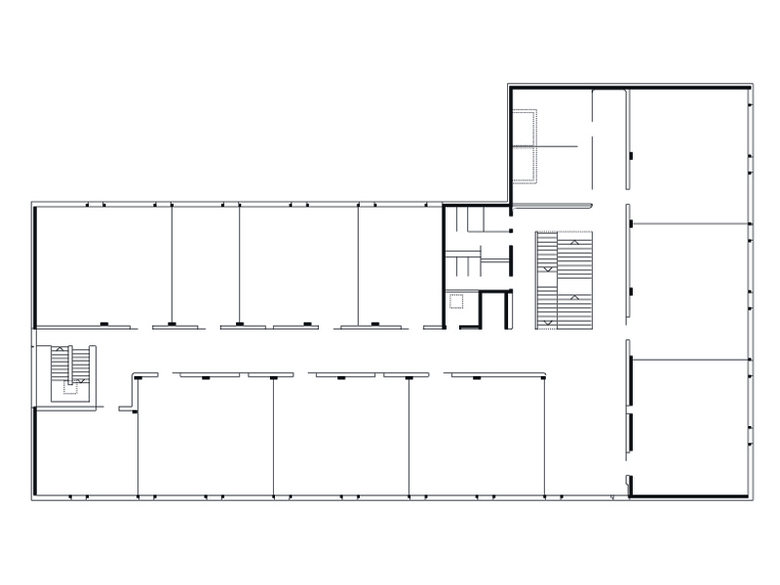 L’école devient alors un microcosme urbain: une distribution principale qui traverse le bâtiment de part en part sur trois niveaux, des couloirs comme des rues intérieures, des espaces de pause en regard sur l’extérieur, deux entrées principales se rejoignant dans un gradin en béton. Le plan de l’édifice scolaire est caractérisé par un choix d’orientation des classes en fonction des différentes vues sur le paysage.