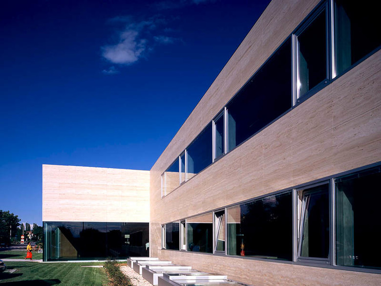Le collège secondaire «Les Pressoirs» s’insère dans une parcelle en aval du village de Lonay. Ici, dans un coteau orienté sur le lac et les Alpes, l’autoroute et les voies ferrées tracent des sillons parallèles dans un territoire au pied d’un ultime pli du Jura. Le projet est conçu comme un volume pur en pierre, scarifié par de longues lignes horizontales en verre qui invitent ce paysage à l’intérieur. A l’angle sud-est, le prisme s’interrompt pour laisser place à un porte-à-faux qui accueille les élèves venant de la route principale.